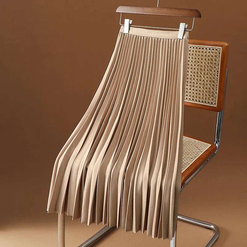 Damen Plissierter Midi-Rock – A-Linie mit Hohem Elastischem Bund