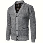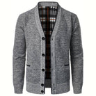 Stylisches Layering mit diesem Herren Hellgrauen Strick-Cardigan mit Kariertem Innenfutter