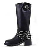 Damen Schwarze Kniehohe Stiefel - Gurt mit Schnallen-Detail