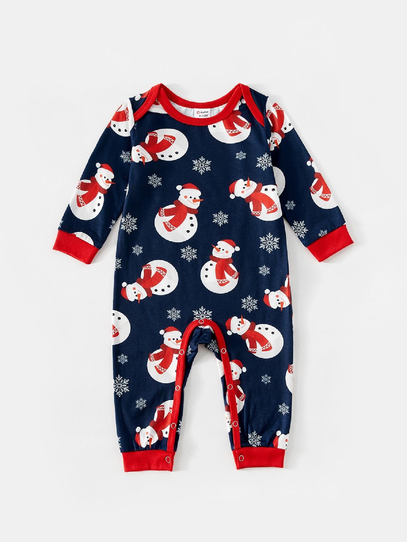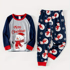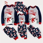 Familien Blaues Weihnachtspyjama Set - Schneemann-Druck und Raglan-Ärmel